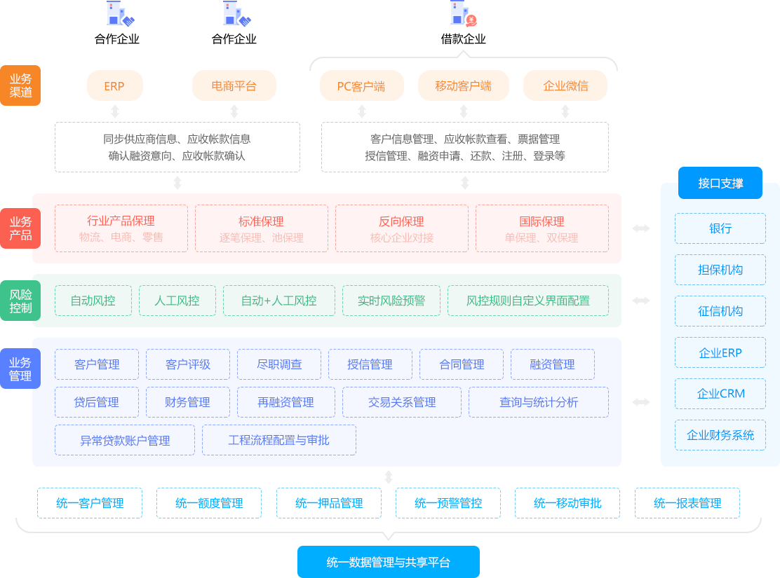 支持建設多機構云保理平臺,支持多行業保理業務:物流、電商、零售、制造等