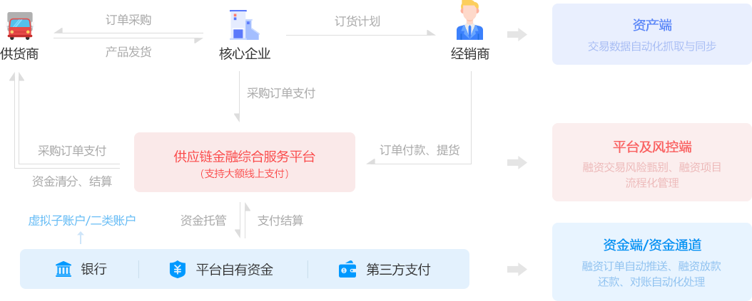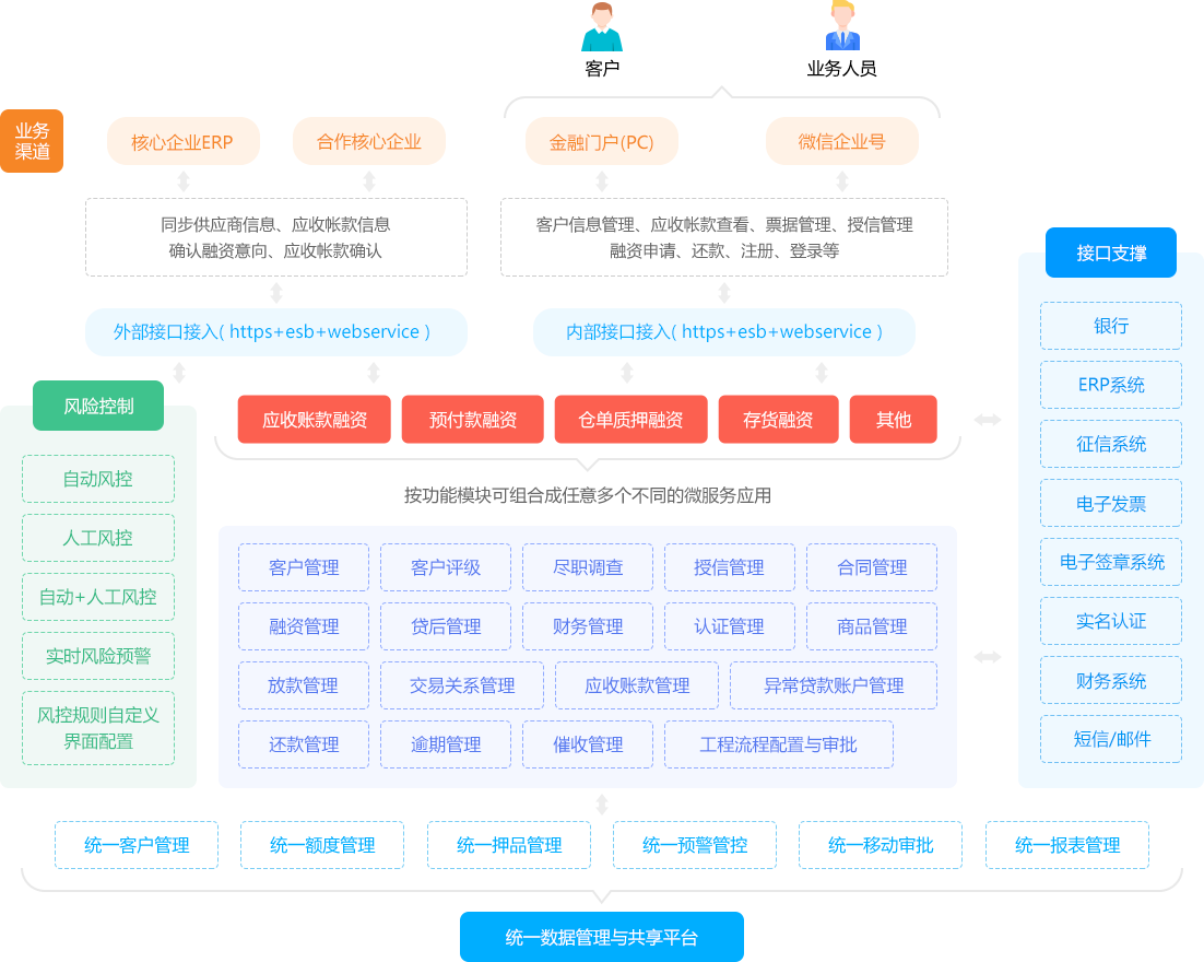 實現對供應鏈金融業務模式的統一管理,涵蓋預付 款類、存貨類等典型供應鏈金融業務模式